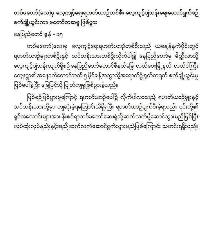 မြန်မာ့နိုင်ငံခြားကုန်သွယ်မှုဘဏ်(MFTB)နှင့် မြန်မာ့ ရင်းနှီးမြှပ်နှံမှုနှင့်ကူးသန်း ရောင်းဝယ်ရေးဘဏ် (MICB) တို့ကို အမေရိကန်မှ စီးပွားရေးပိတ်မည့်စာရင်းတွင်ထည့်မည်ဟု သတင်းထွက်ပေါ်နေမှုနှင့်ပတ်သက်၍ ထုတ်ပြန်ချက်