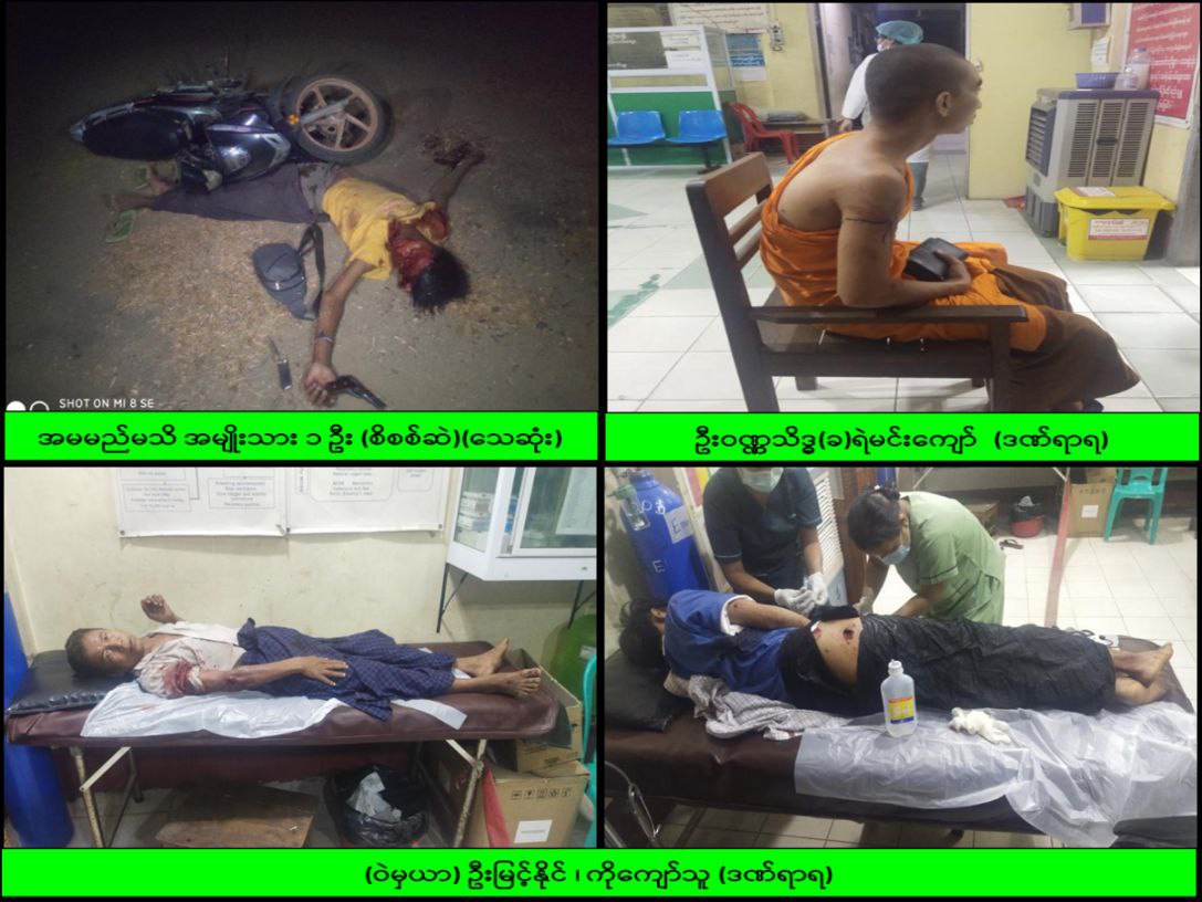 ပခုက္ကူမြို့နယ်တွင် PDF အဖွဲ့က ကားနှင့် ယာဉ်မောင်း အားဖမ်းဆီးသွား၍ လုံခြုံရေးအဖွဲ့က စုံစမ်းရှာဖွေစဉ် အမျိုးသား ၁ ဦးအား နှင့်အတူ အသေဖမ်းဆီးရမိပြီး PDF အဖွဲ့က ပစ်ခတ်မှုကြောင့် သံဃာ ၁ ပါးနှင့် အမျိုးသား ၃ ဦး ဒဏ်ရာရရှိ