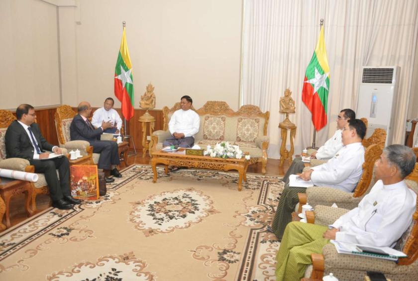ပို့ဆောင်ရေးနှင့် ဆက်သွယ်ရေးဝန်ကြီးဌာန ပြည်ထောင်စုဝန်ကြီး ဗိုလ်ချုပ်ကြီးတင်အောင်စန်းနှင့် မြန်မာနိုင်ငံဆိုင်ရာ အိန္ဒိယနိုင်ငံသံအမတ်ကြီး တွေ့ဆုံ