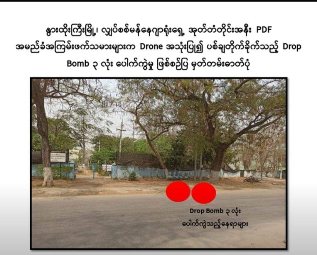 ရေစကြိုမြို့နယ်ထွေအုပ်ရုံးအား အကြမ်းဖက် PDF များမှ Drop Bomb ၁ လုံး ပစ်ချတိုက်ခိုက်ခဲ့၍ အမျိုးသား ၁ ဦး ဒဏ်ရာရရှိ