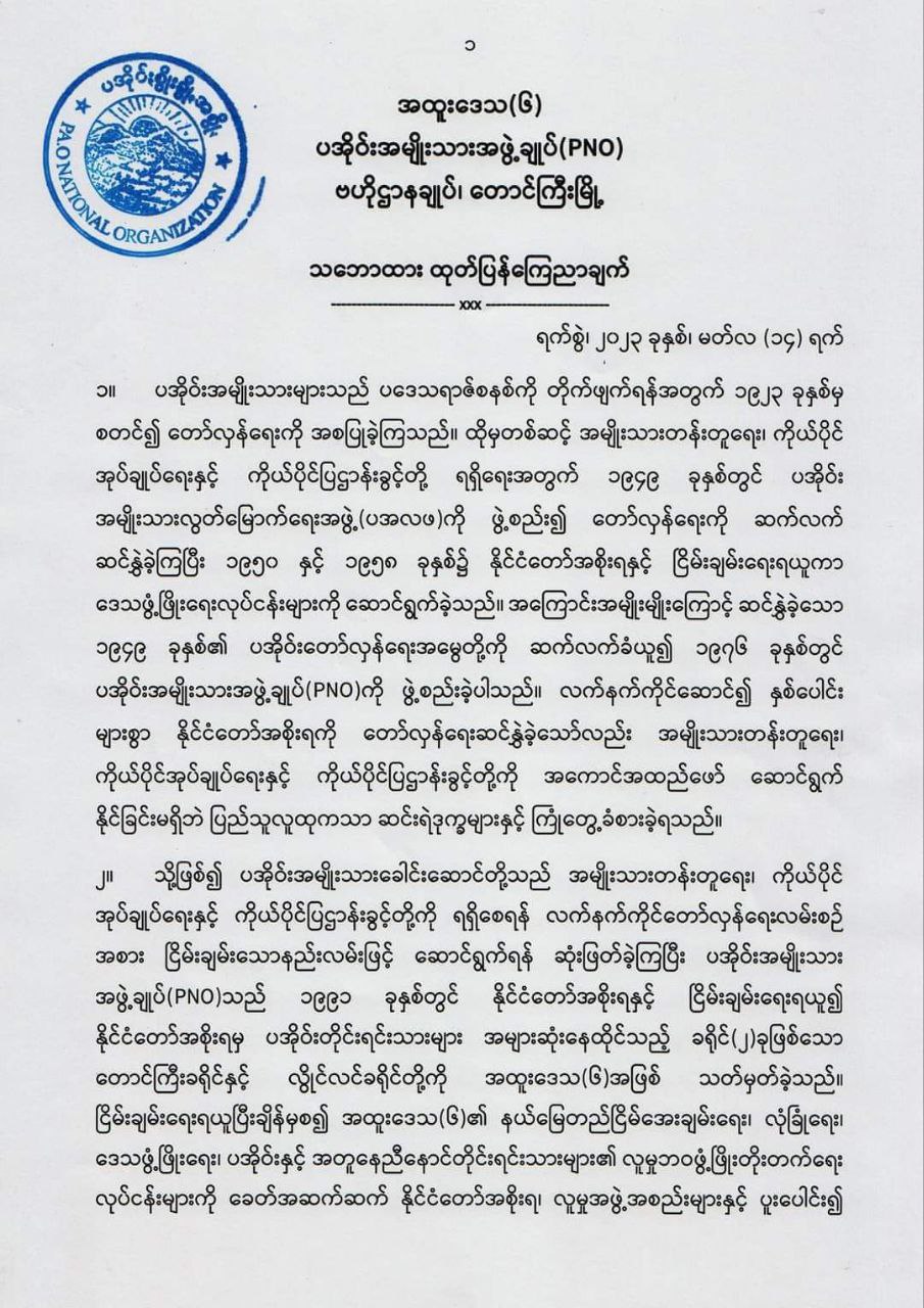 ပအိုဝ်းဒေသ ပင်လောင်း နန်းနိမ့်ရွာ အစုအပြုံလိုက်သတ်ဖြတ်ခံရမှုဖြစ်စဉ်မှာ “KNDF”နှင့်အပေါင်းပါအဖွဲ့အစည်းများ ကျူးလွန်ခဲ့ကြောင်း PNO ထုတ်ပြန်