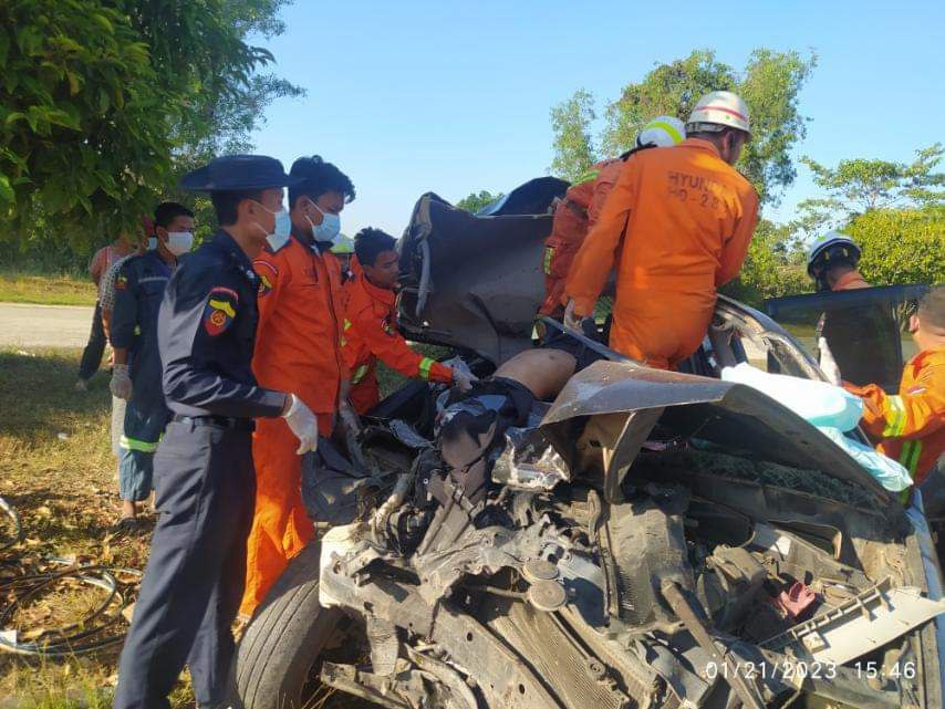 ရန်ကုန်-မန္တလေးအမြန်လမ်းမပေါ်တွင် ကုန်တင်ယာဉ်အား Toyota ကားက နောက်မှဝင်တိုက်မှု ကျား ၂ ဦးသေဆုံး