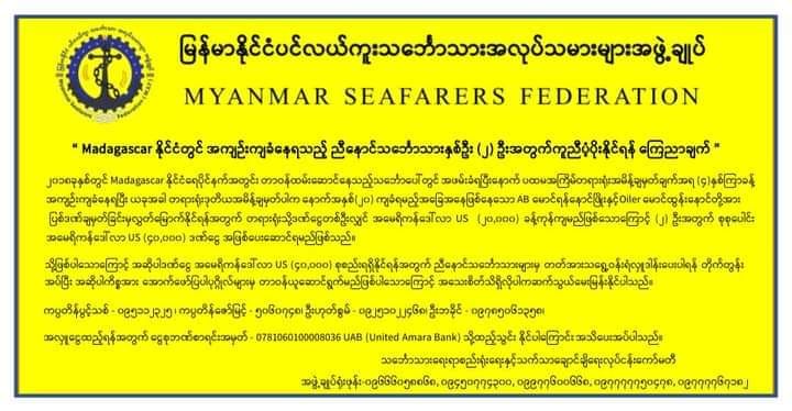Madagascar တွင်အကျဉ်းကျခံနေရသည့် သင်္ဘောသား (၂) ဦး အမိန့်ချမှတ်ရက် ရွေ့ဆိုင်း